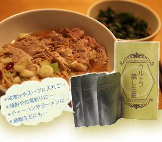 手軽に薬師生姜をお試しいただけるよう、お手頃な価格と量の粉末生姜もご用意しています。風味付けの調味料としてご活用ください。