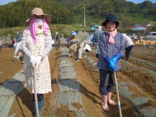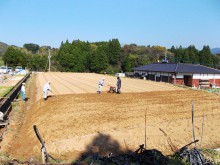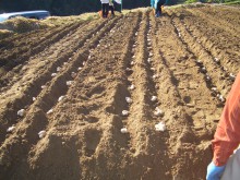 手作業での植付。土を被せた後も、種生姜に十分な栄養を行き渡らせるための工夫があります。